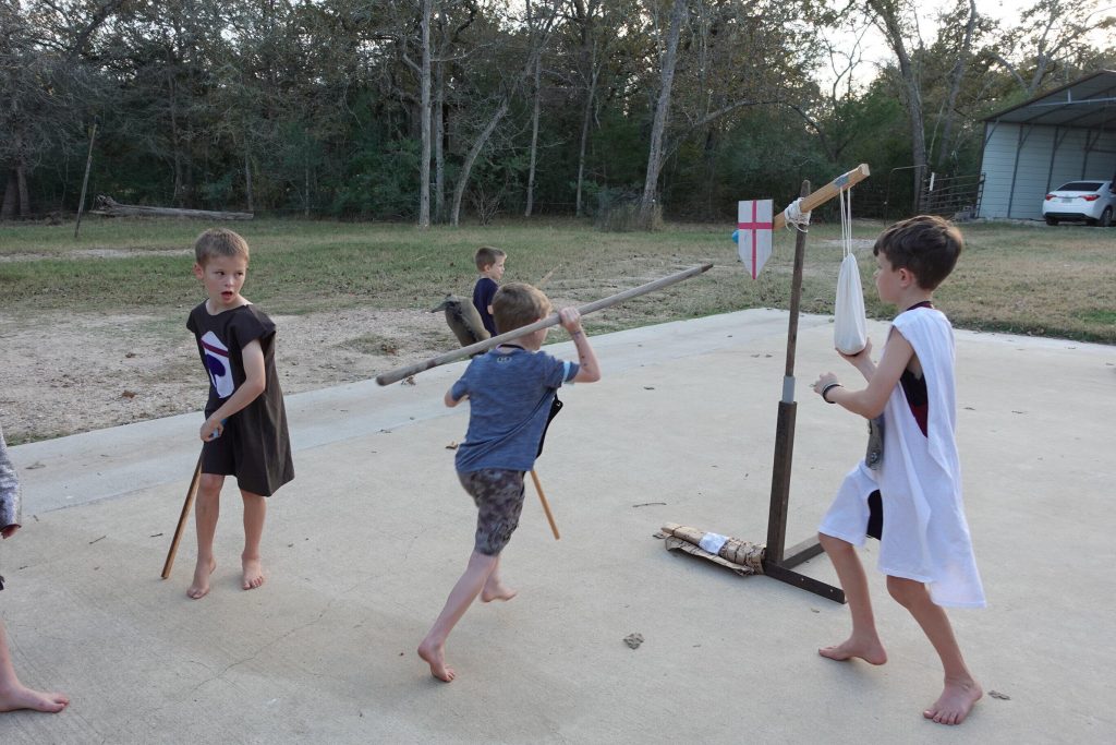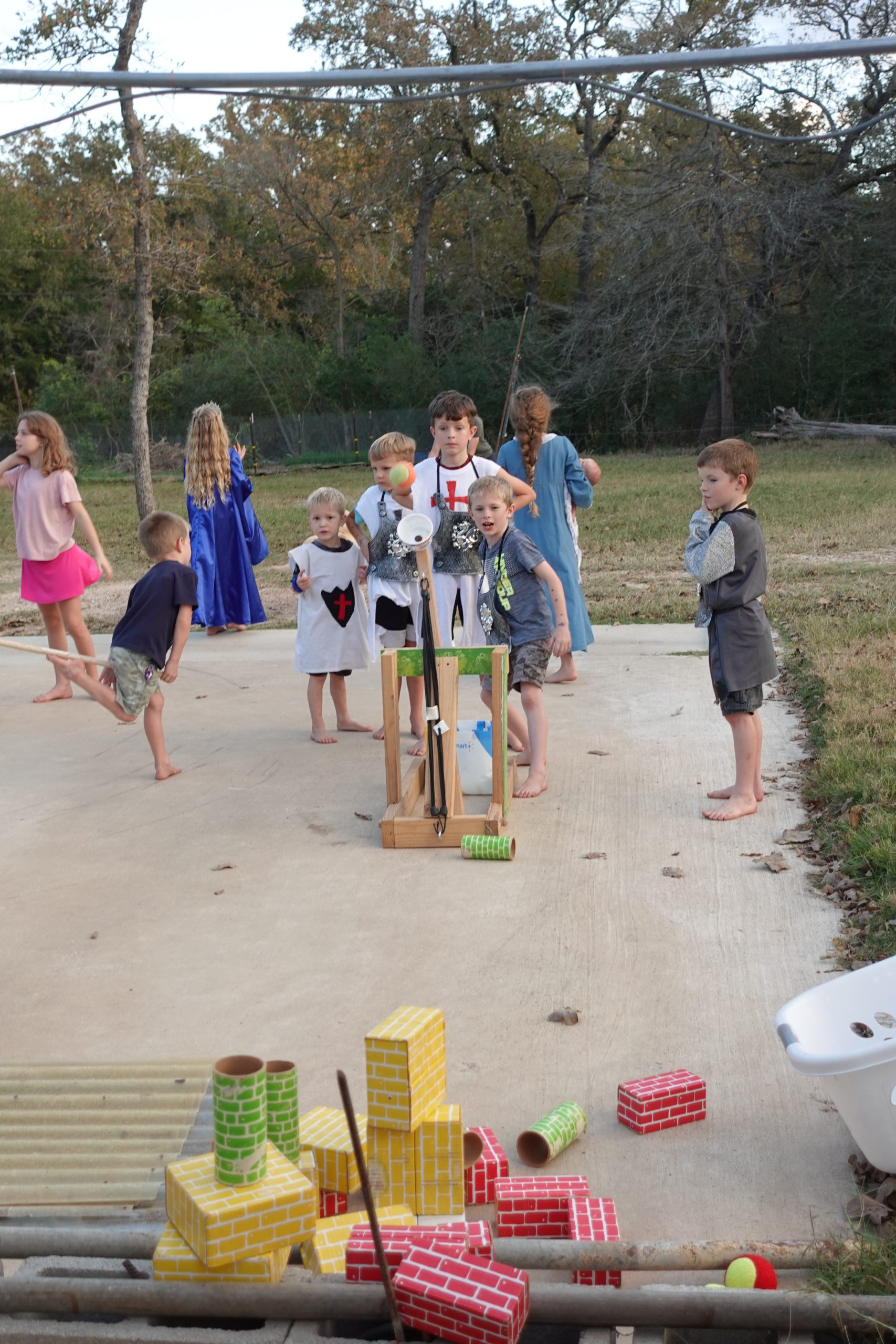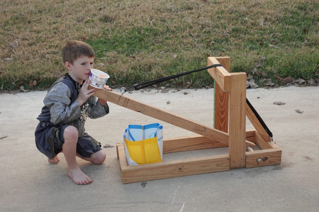 Before we dug in we had our young knights participate in some competitions. A catapult made by Lance used tennis balls to knock down a “castle.”