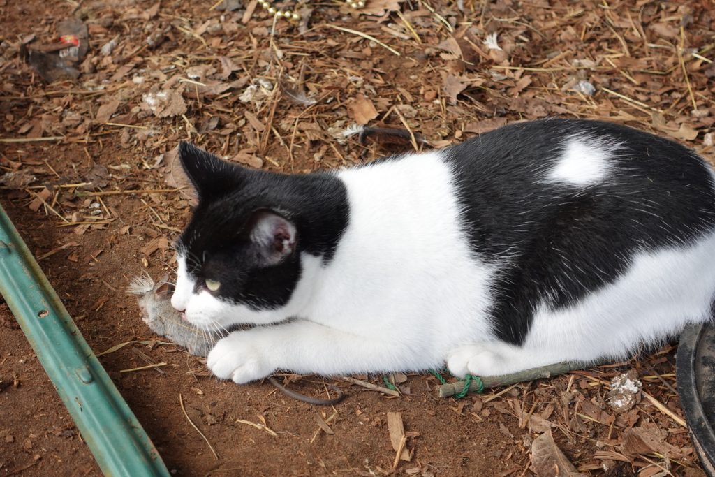 The cat caught the first mouse.